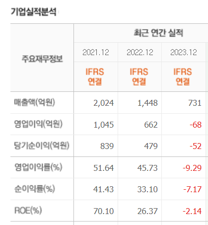 차트는 모두 좋은 모습인데, 실적은 모두 좋지 못하다. 수젠텍은 매출액이 큰 폭으로 급감하면서, 작년에 벌었던 영업이익을 그대로 돌려낸 수준이다. 나머지 종목들 역시, 적자인 모습을 보여주고 있어, 재무 상태가 투자 매력을 끌어올려주지는 못하는 모습이다.